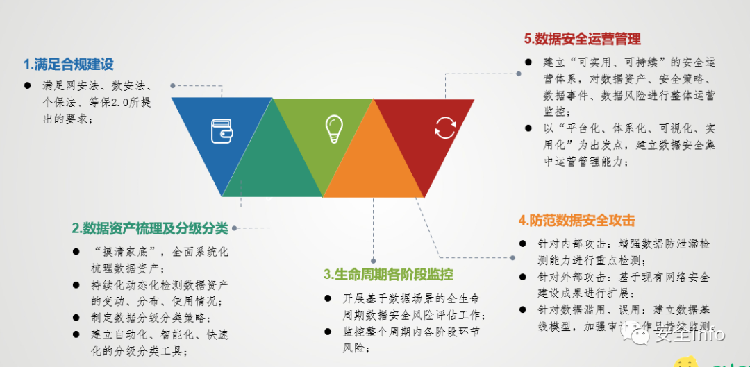 合理的策略制定,包括安全策略、数据管理策略、分级分类策略、敏感数据识别等策略;同事搭配基线扫描,及时发现系统存在风险点;执行国家及行业标准,定期做好风险评估工作。