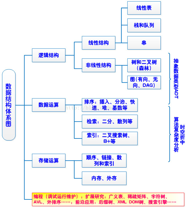一般认为,一个数据结构是由数据元素依据某种逻辑联系组织起来的。对数据元素间逻辑关系的描述称为数据的逻辑结构;数据必须在计算机内存储,数据的存储结构是数据结构的实现形式,是其在计算机内的表示;此外讨论一个数据结构必须同时讨论在该类数据上执行的运算才有意义。一个逻辑数据结构可以有多种存储结构,且各种存储结构影响数据处理的效率。