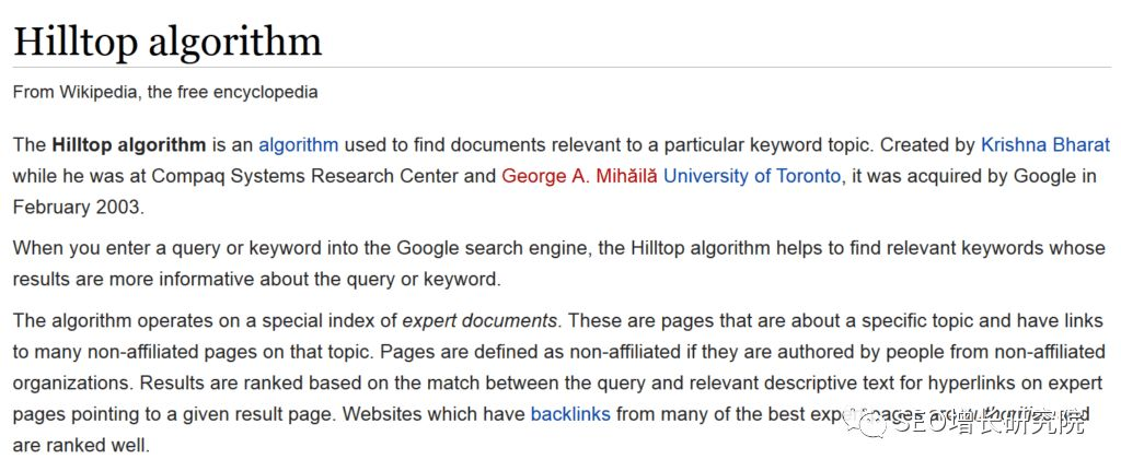 除了著名的企鹅算法和蜂鸟算法,还有一个重要的谷歌算法更新叫做Hilltop。