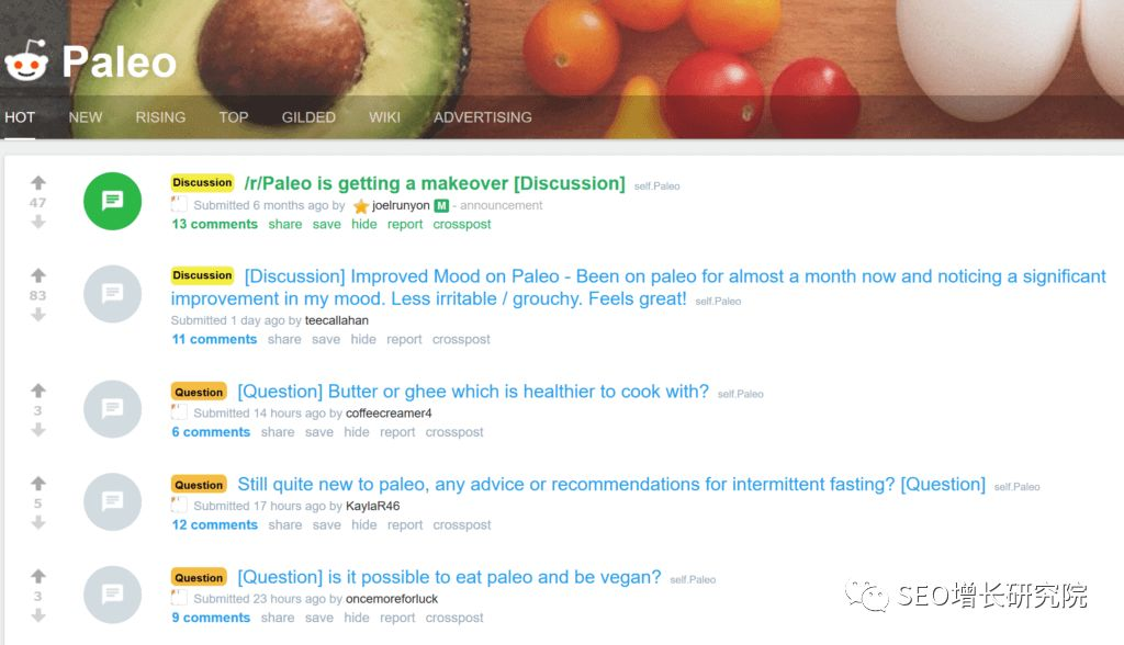 Reddit搜索内容主题和关键字,在搜索结果中多留意频繁出现的那些词。如果人们在Reddit上谈论这些话题,他们很有可能在谷歌上也搜索同样的术语。