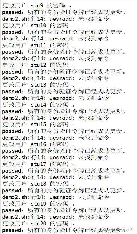 - 一共添加20个用户,即stu1、stu2、stu3…stu20