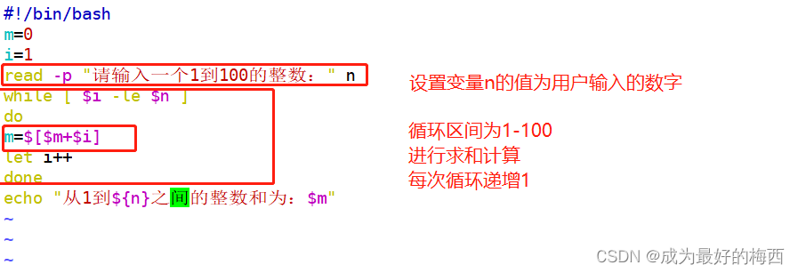⑤、提示用户输入一个小于100的整数,并计算从1到该数之间所有整数的和