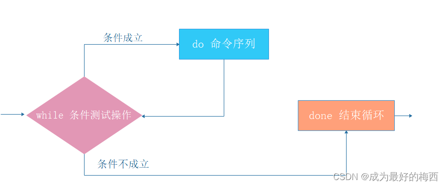 重复测试某个条件,只要条件成立,则反复循环,条件不成立则退出循环(和until循环相反)