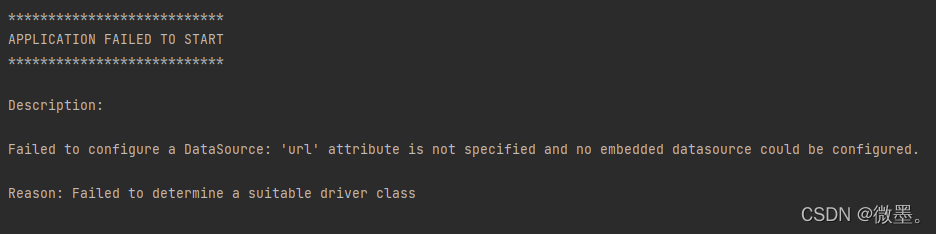 这个环境变量并没有暴露出来,尝试将spring.datasource.dynamic.enabled配置为false,这时启动项目确实不加载我们配置的dynamic-datasource多数据源了,但是依然报错无法启动:Failed to configure a DataSource: 'url' attribute is not specified and no embedded datasource could be configured.