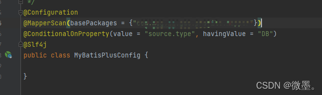 2、容易忽略的一点,启动类上的@MapperScan 也需用条件控制,否则springboot程序启动时,也会去创建XXXMapping类的bean导致失败。简单点的方法是新建一个空的config类,将@MapperScan注解迁移到新建的类上,然后配合@Configuration 和 @ConditionalOnProperty来曲线救国: