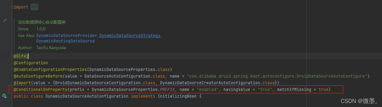 1、baomidou/dynamic-datasource-spring-boot-starter 文档并没有提供相应的开关功能;于是我扒了下源码,发现文档虽然没提供,但是相关的配置类还是有开关的,如下图: