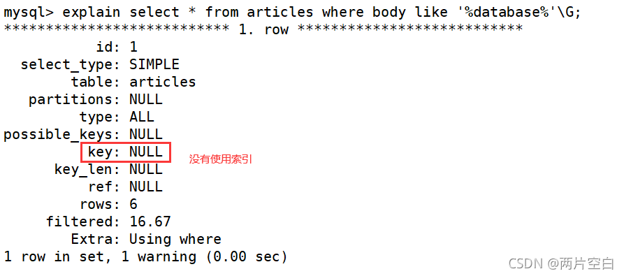 并没有使用全文索引,而是将数据全部遍历查找。