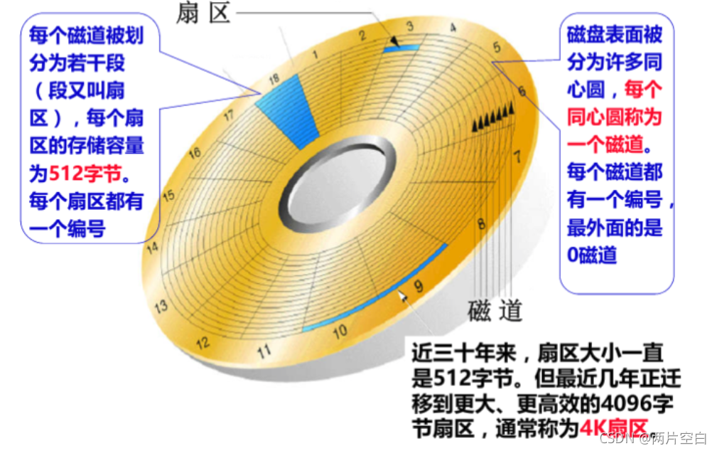 从上图看,离圆心越近扇区越小,离圆心越远,扇区越大。最新的磁盘技术已经让扇区大小不同。