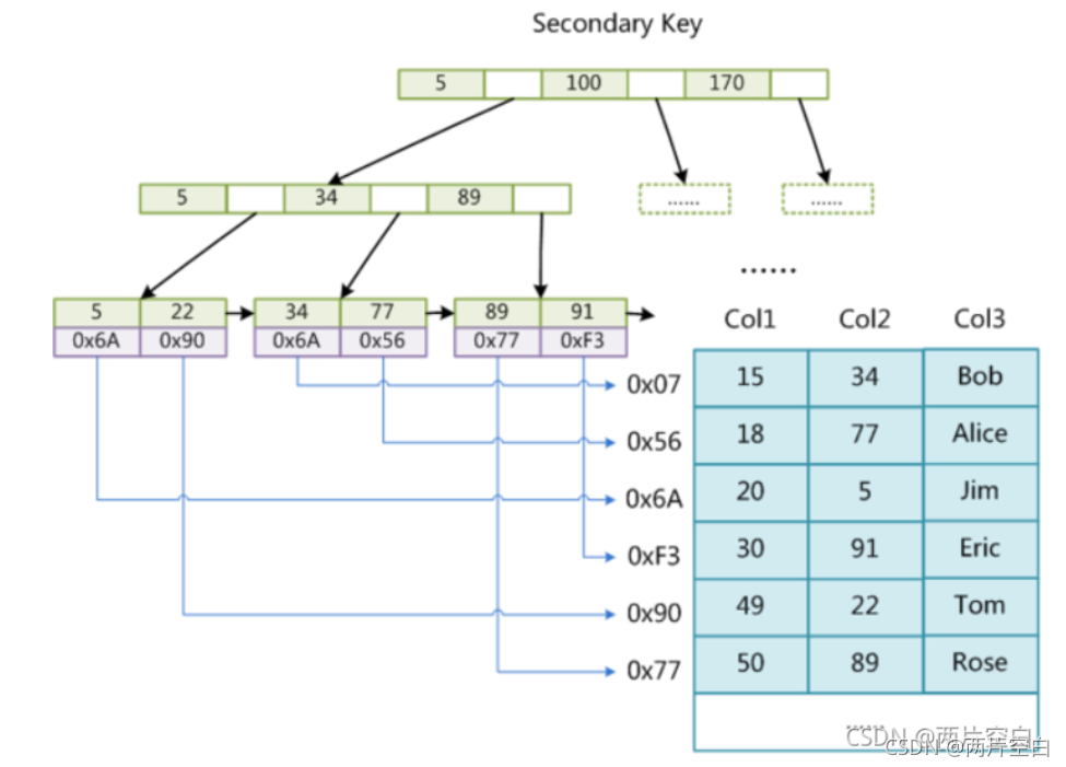 下图是以Col2建立的辅助索引。