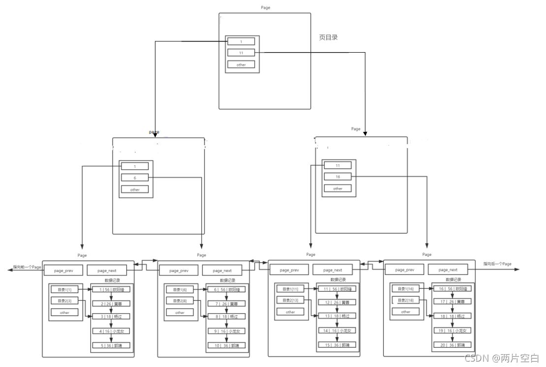 于是在单个page中查找某个值时,先查询目录,找到对应链表段,再遍历链表段,找到数据。这样会大大提高效率。