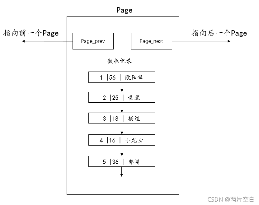 MySQL中,Page的大小是固定的16KB。当一个文件数据很大时,需要由多个Page来构成。同一文件的多个Page使用双向链表组织起来。