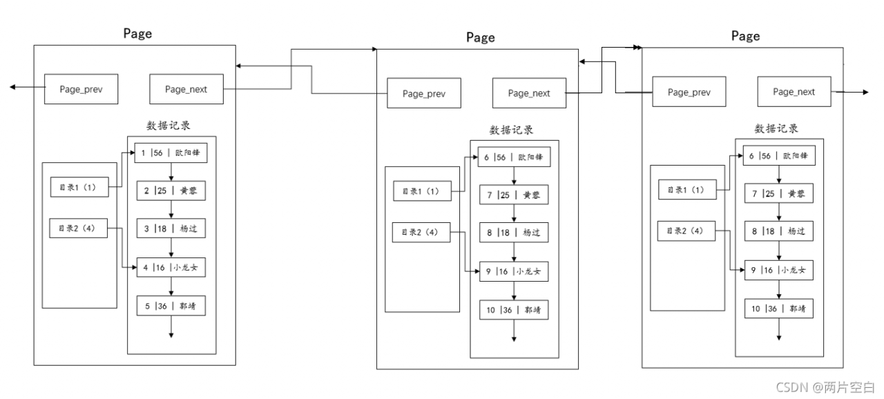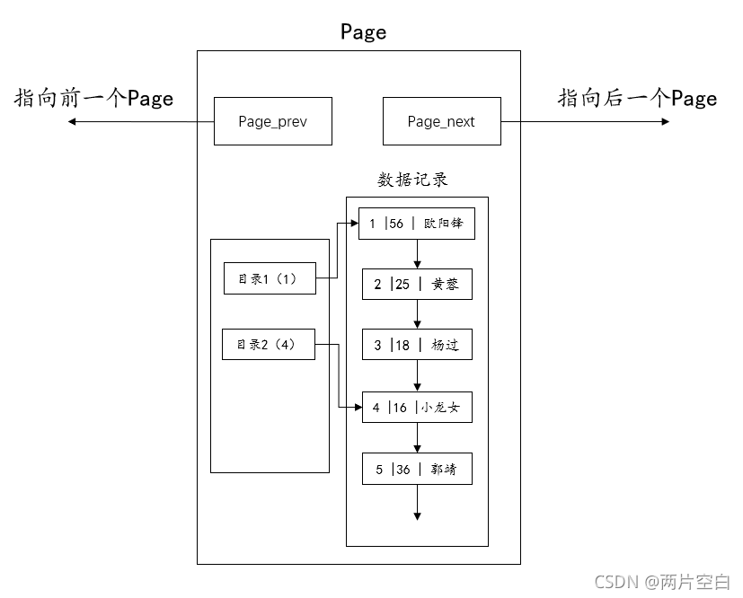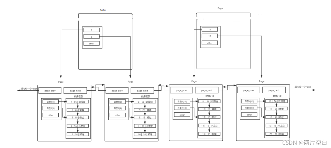 - 和双向链表page里的目录不同的是,这个目录管理的是管理的级别是整个page。而双向链表中page的目录管理的级别是链表的结点。