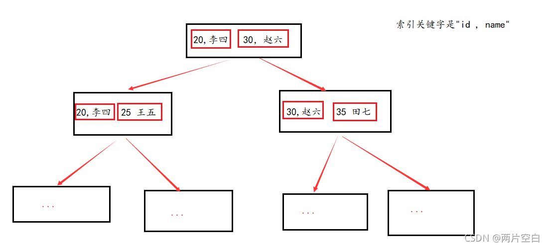 - 非叶子节点,数据保存的是一个个子节点中数据最小的键值和子节点的地址。