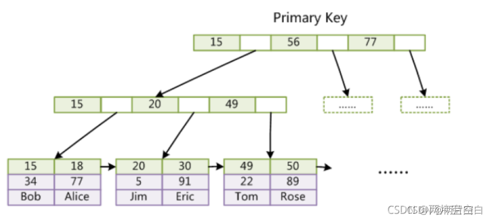 - 叶子节点保存数据,是真实的所有用户数据。
