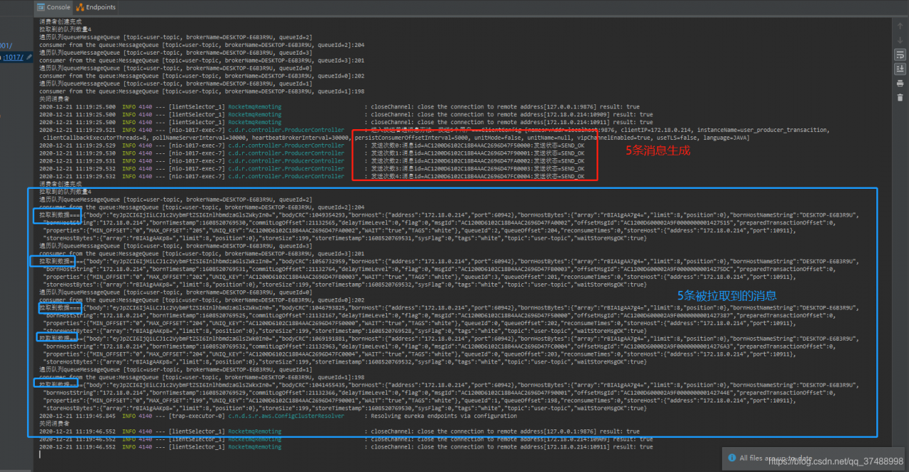 模块中添加的swagger的依赖,没有的可以用postman测试:先调用消息,然后调用拉取接口;