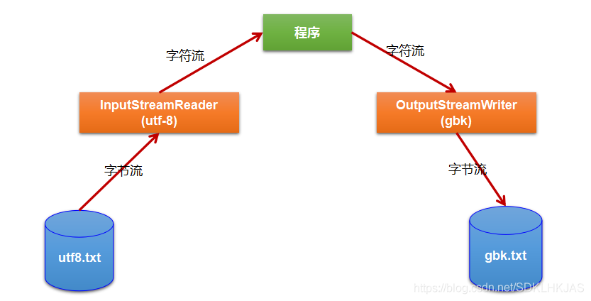转换流 java.io.OutputStreamWriter,是Writer的子类,是从字符流到字节流的桥梁。