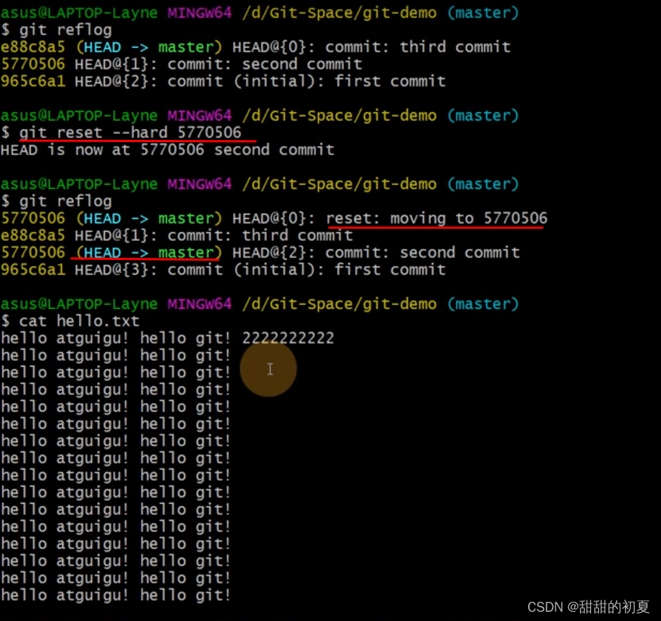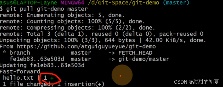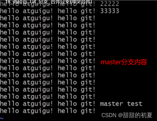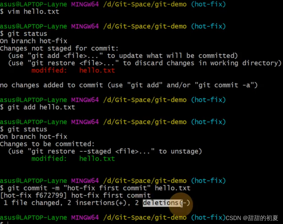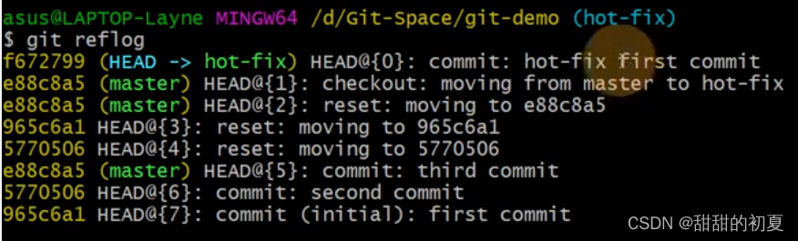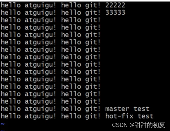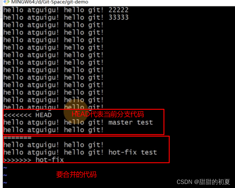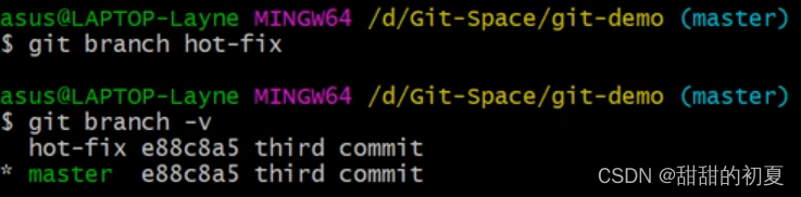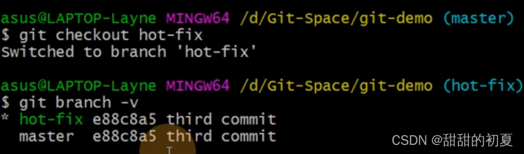 合并分支后,只会修改当前分支master,不会修改要合并的分支hot-fix
