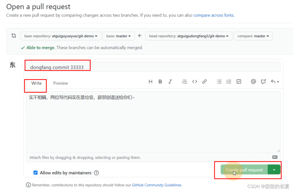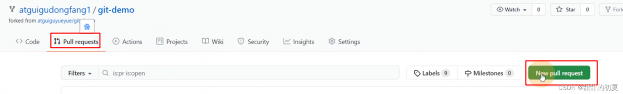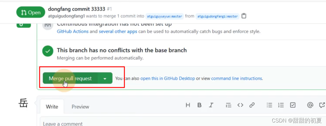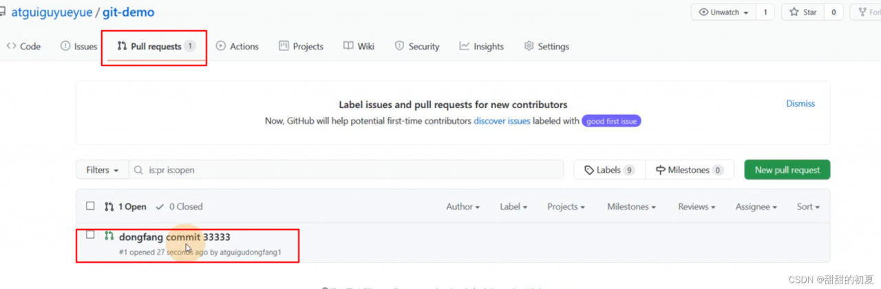 创建pull request 之后,在别人的git仓库下,就会出现下图