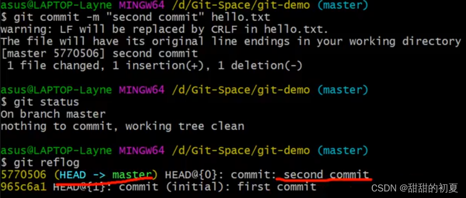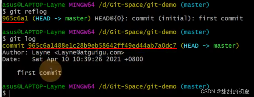 git log查看的是详细日志信息,版本号为完整的。git reflog 查看的是精简的日志信息,版本号为完整的前7位