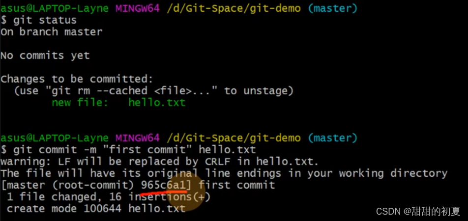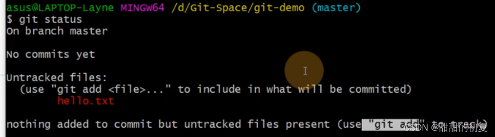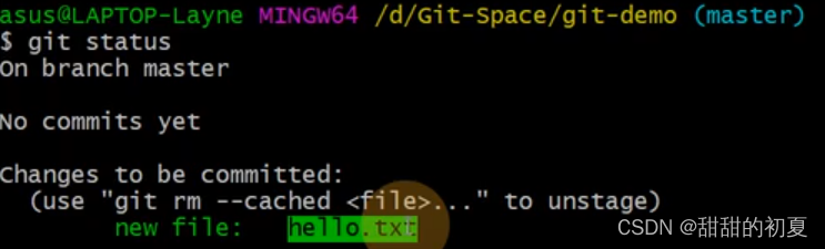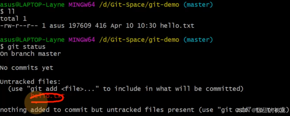 红色hello.txt代表在工作区