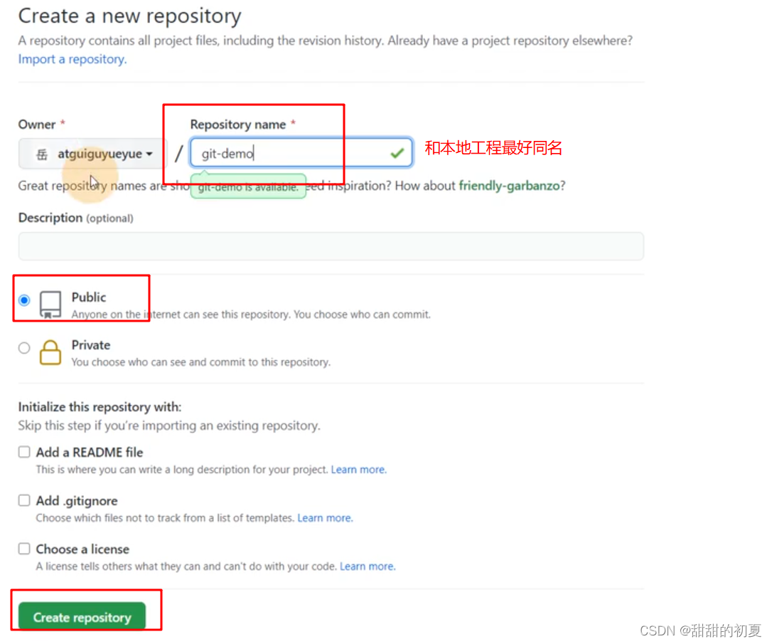 1.创建远程仓库