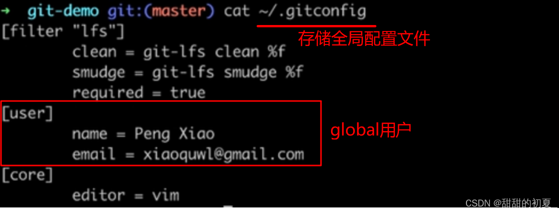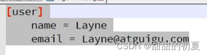 git config --global user.email "登录邮箱"设置完用户签名后,会在用户名目录C:\Users\Lenovo下生成 .gitconfig文件,文件内容为
