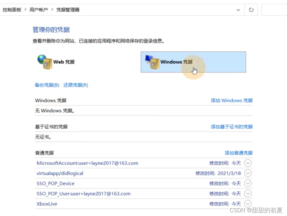 win搜索是否有凭据管理器,当前没有凭证
