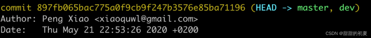 碰巧两个指针指向同一个地方,所以HEAD->master,dev