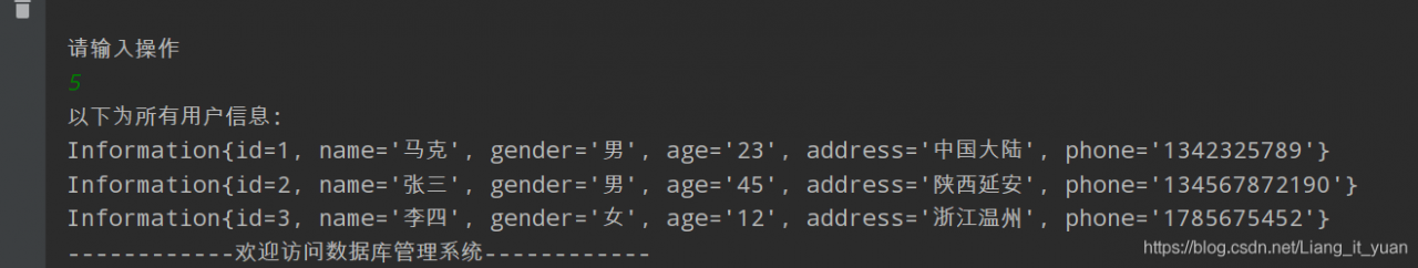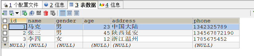 (4,'***','男',20,'陕西省*****','18723****74');六.效果展示