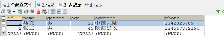 (3,'**','男',21,'陕西省*****','1567*****797'),