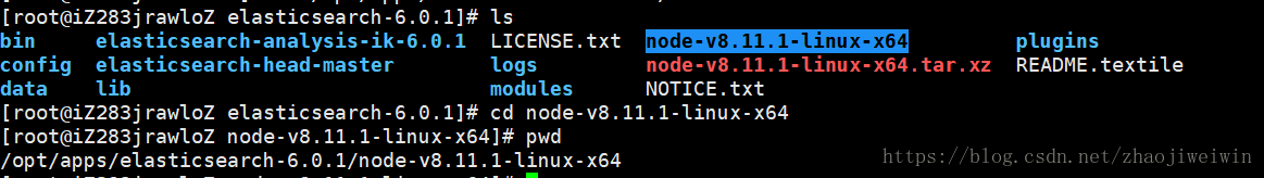 # tar -Jvxf node-v8.11.1-linux-x64.tar.xz es目录下执行解压缩,本人下载的是xz格式的(在线下载方式: wget https://nodejs.org/dist/v8.11.1/node-v8.11.1-linux-x64.tar.xz)