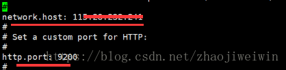 # vi elasticsearch.yml开启network.host: 你的ip http.port: 9200 注意冒号后要有空格,编辑后ctrl+c :wq 保存退出即可