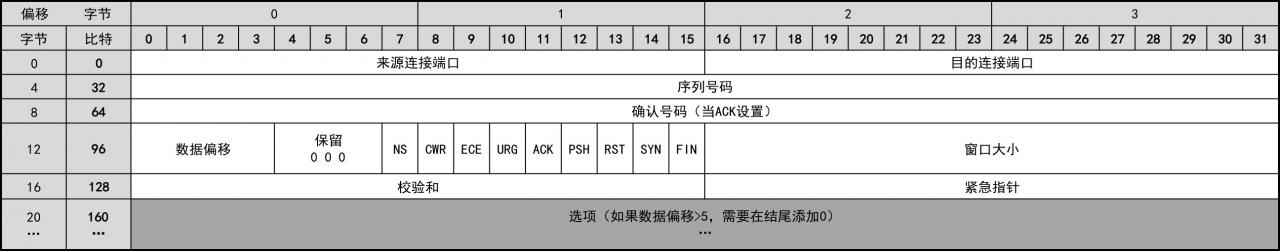 通过对TCP数据包格式的分析,就是了解TCP协议定义的过程。