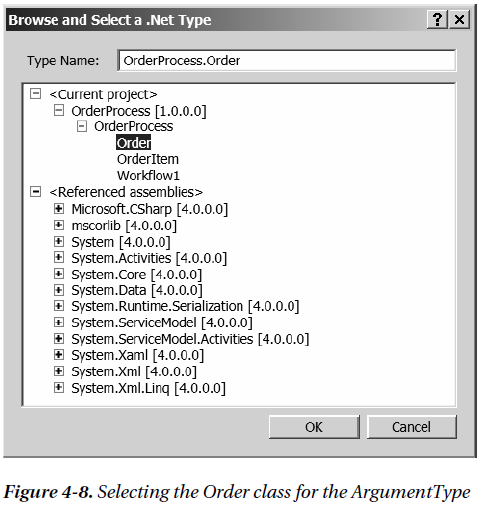 提示:如果在OrderProcess引用中看不见Order类,你必须生成解决方案。点击Cancel按钮,点击F6生成解决方案(这时有可能报错“The type or namespace name ‘Workflow1’ could not be found (are you missing a using directive or an assembly reference?)”)