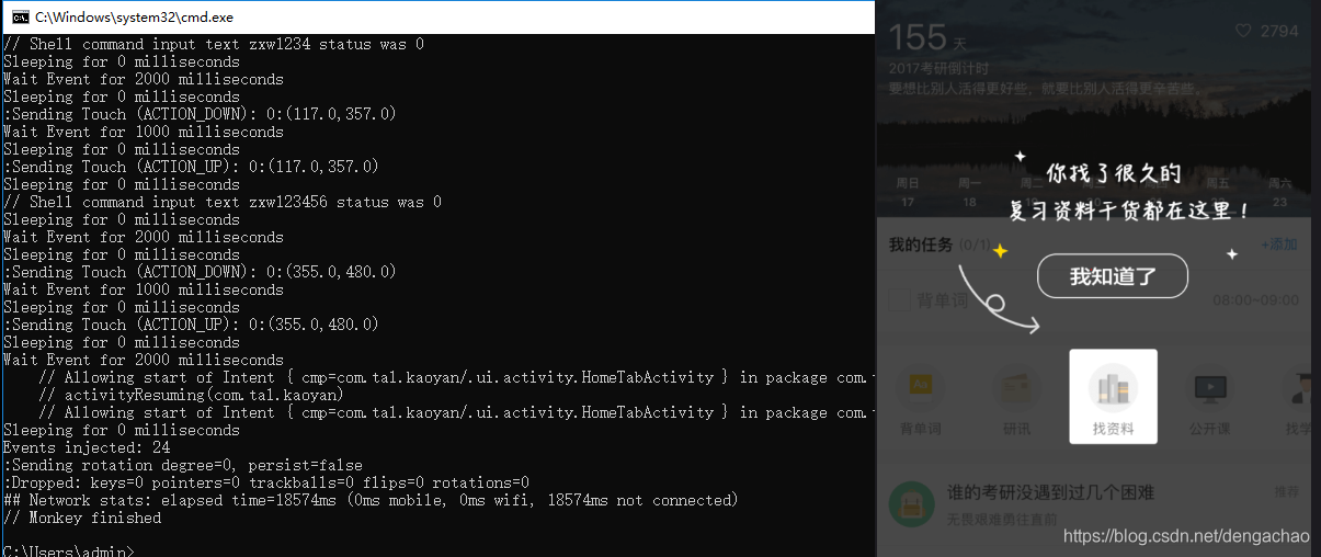 adb shell monkey -f /sdcard/kao.txt -v -v 1