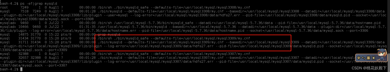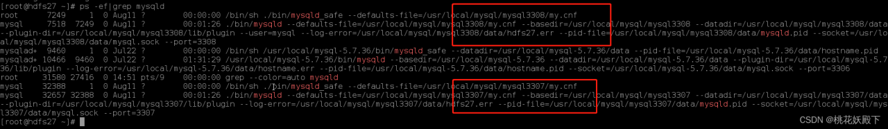 可以看到我之前已经部署了3307端口和3308端口的mysql,还有个3306的是别人的mysql而且版本也跟我不一样那我管不着