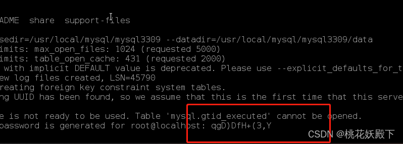 初始化后会有默认mysql的密码,一定要记住