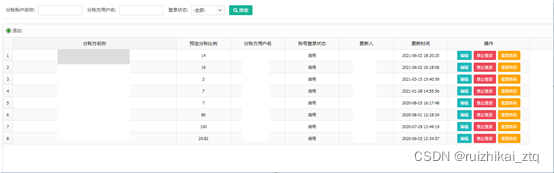 调用分账内部服务实现分账、删除分账、查询分账明细等功能: