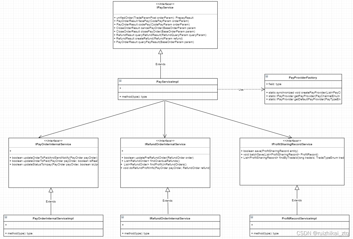 通过支付提供者工厂获取相对应的支付提供者,具体的支付提供者实现支付、退款、查询等支付相关功能。