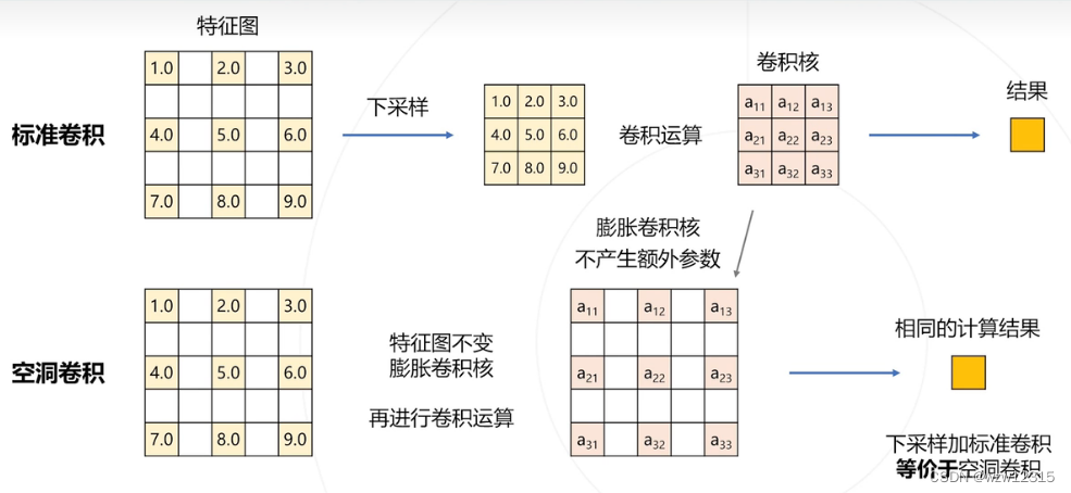 下采样会导致输出尺寸变小,空洞卷积如何解决下采样问题: