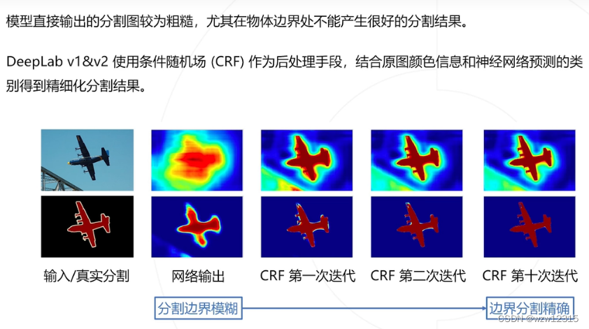 (b)使用条件随机场(CRF)来后处理,精细化分割图;