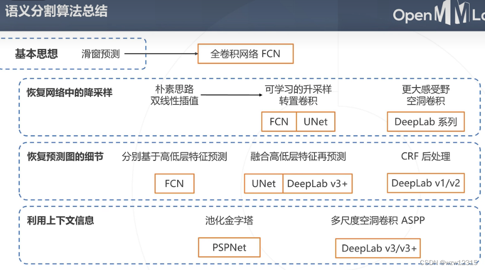 解决方法:对预测的分割图进行升采样,恢复到原图分辨率。升采样方案主要有:
