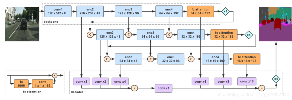 - 获得了实时和低计算量的语义分割上的新记录。与现有工作相比,网络可以提供高达8倍的FLOP和2倍的更快速度,并且具有更高的准确性。