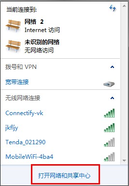 首先打开 网络和共享中心