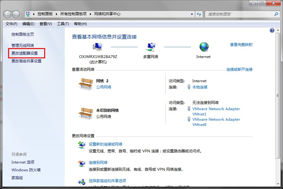 点击 更改适配器设置