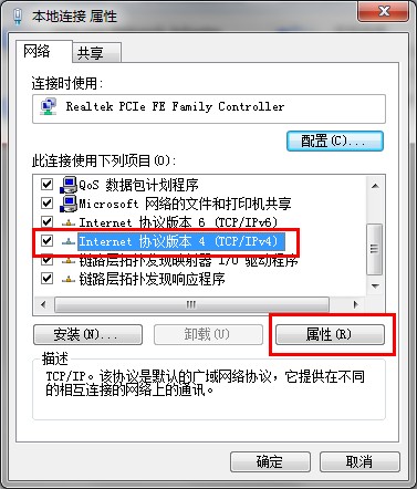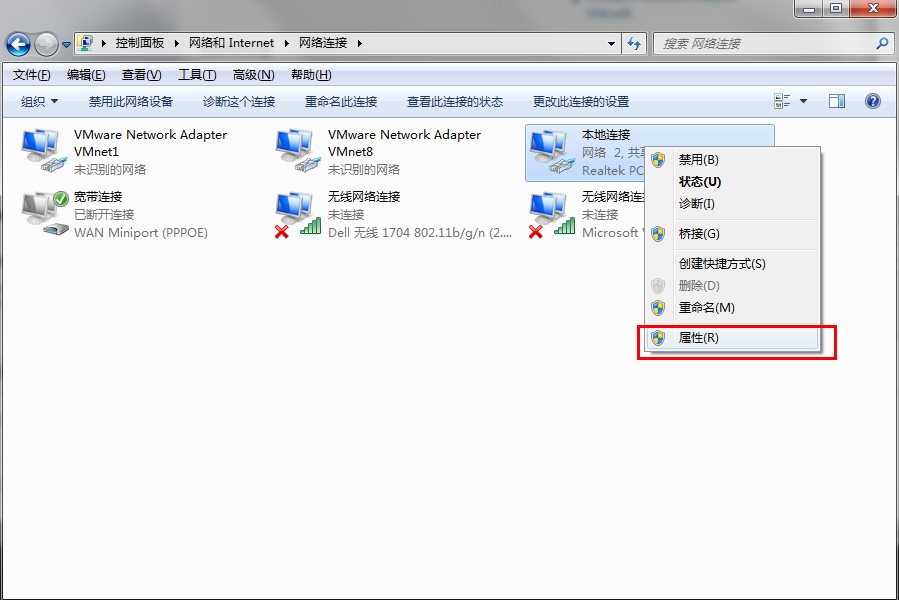 右键查看本地连接的属性