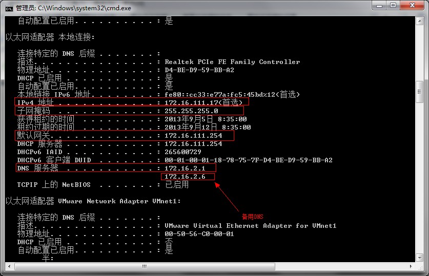 输入ipconfig /all 按回车键