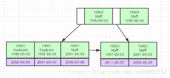 单列索引其实也可以看做联合索引,索引列为1的联合索引,从下图就可以看出联合索引的底层存储跟单列索引时类似的,区别在于联合索引是每个树节点中包含多个索引值,在通过索引查找记录时,会先将联合索引中第一个索引列与节点中第一个索引值进行匹配,匹配成功接着匹配第二个索引列和索引值,直到联合索引的所有索引列都匹配完;如果过程中出现某一个索引列与节点相应位置的索引值不匹配的情况,则无需再匹配节点中剩余索引列,前往下一个节点。