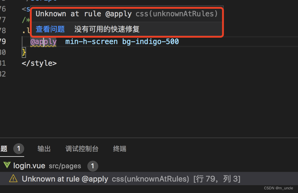 使用windicss,将使用到的class名集合到新的class中报错Unknown at rule @apply
