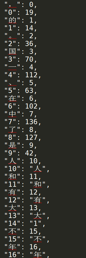 代码实现的很清晰,关键的部分也都有对应的注释内容,这里就不多解释了,核心的思想就是将字符或者是标签类别数据映射为对应的index数据,这里我没有对频度设置过滤阈值,有的实现里面会过滤掉只出现了1次的数据,这个可以根据自己的需要进行对应的修改。